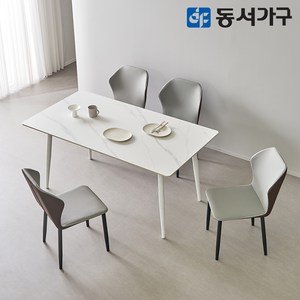 동서가구 캐빈SF 4인 safety 포세린 세라믹식탁세트 1600(레니스체어) DF644566, 마블화이트, 블랙[의자색상: 아이보리]